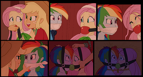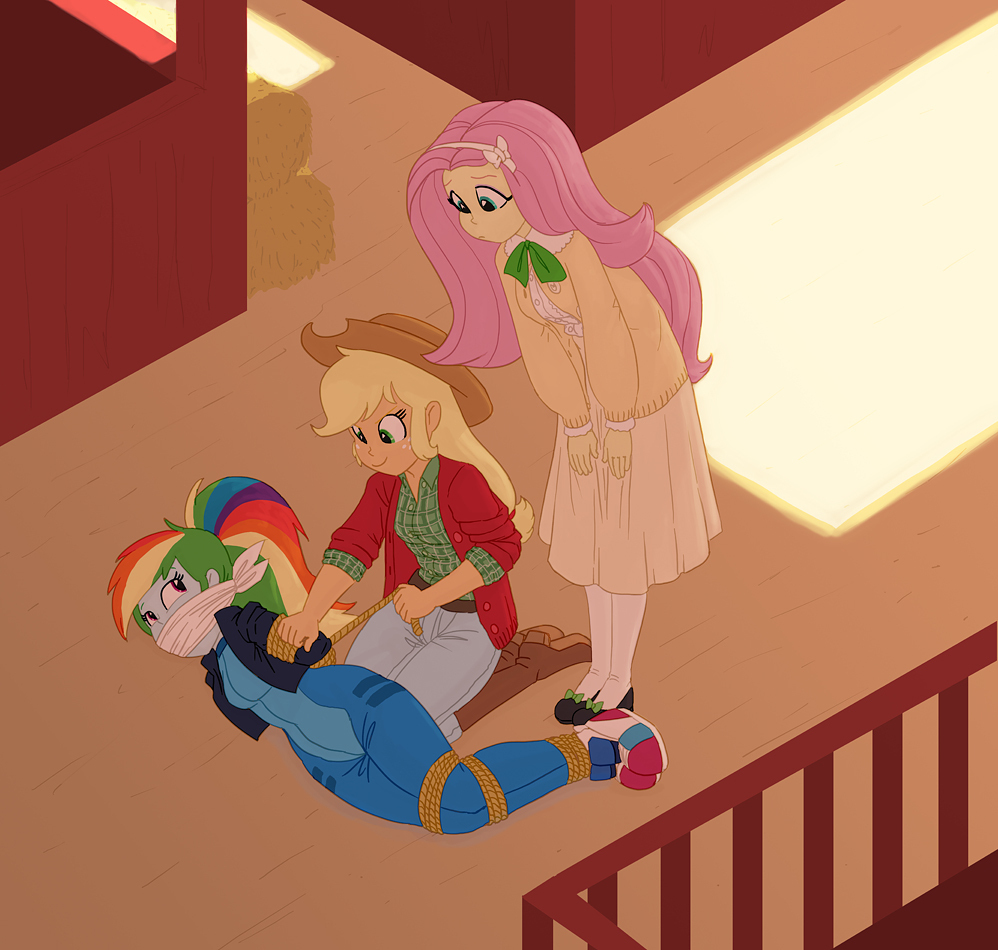Fluttershy wants to learn how to spice up her bedroom fun with Rainbow Dash, so she goes to Applejack for help. But then Applejack decides to flip it around and show Fluttershy how to really "learn the ropes"...