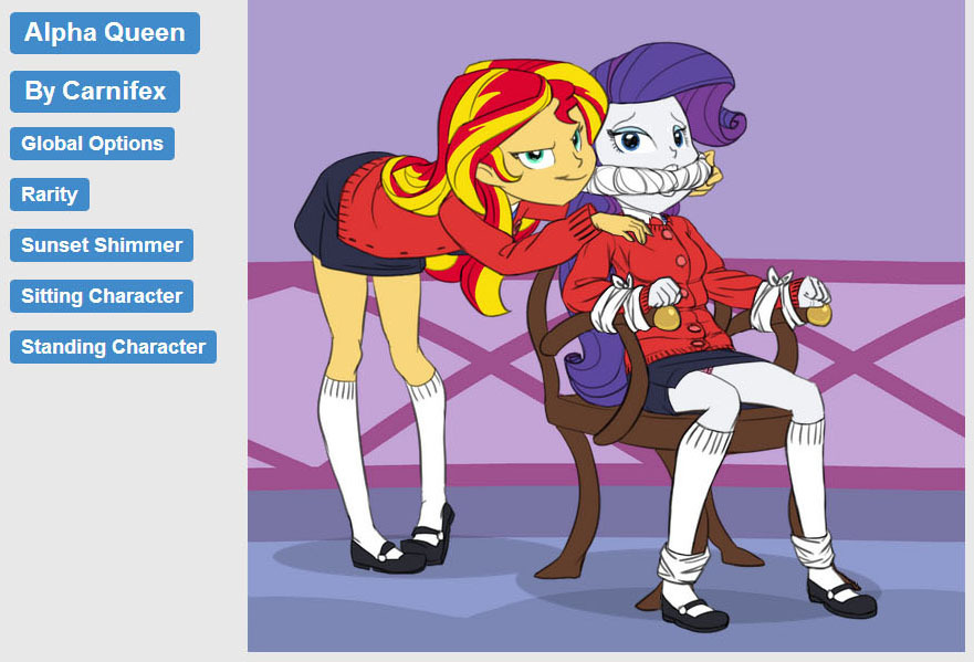 Sunset Shimmer has decided that Rarity cant be allowed to rival her popularity any more! But what — if any — role do you play in the story? Find out with Alpha Queen today!